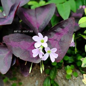 オキザリストリアングラリス(紫の舞) 🏷️2の付く日は斑入りの日 独特の葉色で斑入り三角葉 ピンクの花が際立ちますね。 因みに白花タイプは、 緑色の三角葉で、 斑は入ってません。 (現在咲いて無くて🙏)