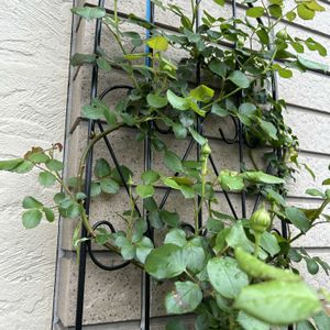 花友さんから譲り受けた可愛いクリスティアーナ 蕾がついて来ました 南東角に今年は誘引しています 何年育てても❓が多いバラ育てなので記録を残すことに 以下記録 ④12月に挿し木の際の元枝を 大胆にも剪定 基本、ベランダでの鉢栽培の為 コンパクトが鉄則 この悲しい環境での剪定は常に 思い切りが必要 しかし、流石に切り過ぎではとバラに無頓着の家族にまで言われてしまったが‥ ②.③しっかり蕾もつき新しいシュートも出ました! 今朝、雨後に一気に伸びたシュートの蕾はピンチしました 開花が楽しみ😊
