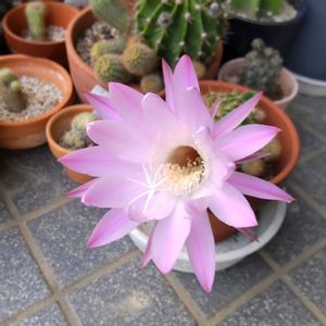 🌤️おはようございます✨ 🌸咲いてました🥰 今朝 5:00 開花を見守ってあげるつもりが, 昨夜は途中で寝落ちしてしまいました⤵️💦 大好きな 我が家のサボテン 🌸ラッパサボテン