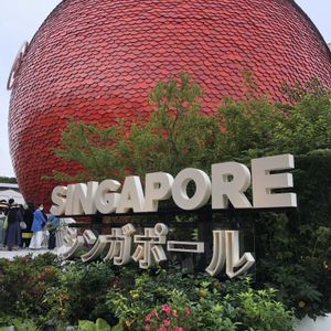 関西万博シンガポール館に入りました。🔴😄 植物の葉🌿の切り紙とシンガポールの桜「トランペットの木」(テコウボク科)をパチリ!📸🌸🤗 夜空に浮かぶ「世界平和※」と「太陽の塔の未来の顔」は塔さん直筆です。🌞✌️ ※世界平和の言葉は、愛子さんの真似をしました。🙇