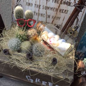 先日の南青山でのイベントで 材料だけ持ち帰ってた ミニサボテンとikuraちゃんの木箱✨ 🌵寄せ完成❣ サボテンぎゅーぎゅーにいっぱい入れる程 狩ってなかったから😂 家にあった 星の砂とミニ貝殻が 入った小瓶を一緒に飾ったょ〜 リアル錆ネジは タニ友ちゃんからのプレゼントを 利用させて貰った⤴️ 回りに入れたココヤシファイバー いつも、入れるのテキトーで(^^;;💦 もしゃもしゃ過ぎかな‥😅 毎日暑くて、タニパトも疎か気味💦 まだ、まだ暑い日続くよね😂 今月もぼちぼちだと思いますが *゚ヨロシク オネガイシマス゚* (⁎ᵕᴗᵕ)⁾⁾
