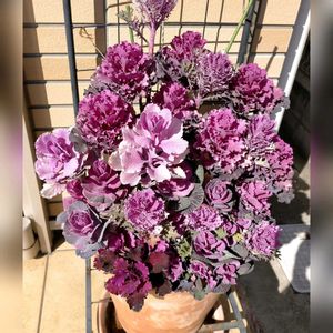 こんばんは〜🌛✨ 今日は久々に風のないポカポカ陽気の一日に… 気持ちが良いですねぇ〜☀🙅 昨日解体をした葉牡丹の寄せ植え & 葉牡丹のリース (一つ目の10月頃の作成リース) を 一つにまとめましたらこんな感じに…🩷💜🩷💜 花束💐の様に可愛ぃ〜 まだまだ楽しめそうです🤗💕 スライドをして見てねぇ〜☺️🎶
