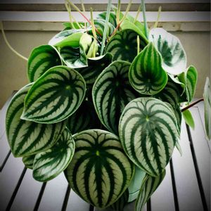 多肉にはまり、多肉は増やさないように我慢してきたが、お花にはまりベランダいっぱいで梅雨や夏に枯らしてしまいそうなんで、強健な夏花だけに絞り込んでいたらこんどは部屋で育てられる観葉植物にはまってしまいました💦 あれもこれも欲しい💧 でも我慢。 主人にはこれ以上増やすなといわれコソコソ目立たないものしかかえない。 スイカペペロミアは、巨大サイズて写真撮って旦那にみせたらキモいといわれ 小さい苗の入荷待ちだよ💧 スイカ🍉みたいな模様と丸い葉っぱに ドハマリ(✾♛‿♛)ノ
