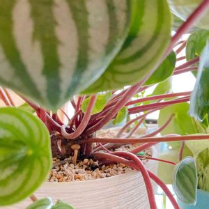 スイカペペロミア🍉🌿 ペペロミア・アルギレイア🌱🌱 コチラも日曜日(5月31日)にお迎えしました 可愛いし、面白い葉っぱだー🍉🌿🌱🎶 久しぶりに行った園芸店には欲しいものがいっぱいで フィッシュボーンカクタクとか リプサリスピンクサリーとかもありました❣️ 欲しかったけどでもどっちもデロデロに成長してて私の手にはおえそうになくお迎えしませんでした💦 手乗りサイズくらいのグリーンを大きく育てるのが好きです🌱😊