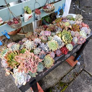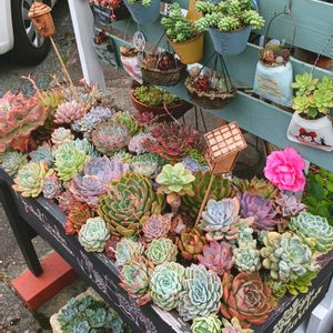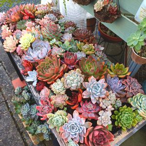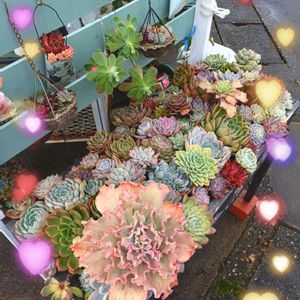 【記念日post】 5300post目 雨ざらしにしてる寄植え鉢にしては 夏を乗り切ったと言えるのかな でも傷みが激しい子は沢山いて 天気が落着いたら抜いて養生させないと⋯ 脱落者全くなし!とは行きませんでした🥺