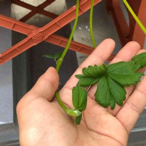 とちおとめの新しい葉です。 新しい葉は水をはじくので水がかかるとすごく綺麗なんです! 実がもう少しで終わりそうなのでこの苗ももう少しで処分ですなぁ