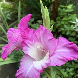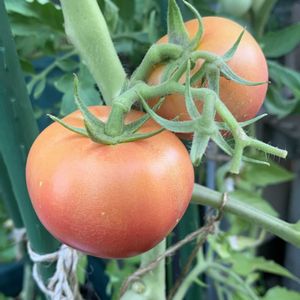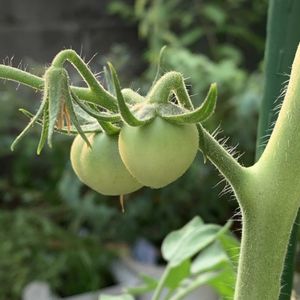 グラジオラスが咲き始めています 今年は少し足したのであちこちで咲いてくれるかな トマトの悩み 最初のトマトの実がピンポン球くらいになりました 次々と咲く花にトマトトーンをかけると花の見た目も変化していく事に気づきました そろそろ次の段階のお世話の勉強を…と本を読み進めると『葉かき』という言葉が目に入りました 現状を確認してみると最初の葉のところから茎が育ってます これは脇芽?かなり太い… プランターで2本仕立てはありか、なしか …切るか?と悩ましいです