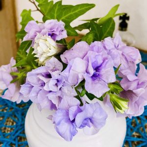 こんばんは 梅雨が明けて今日はすっかり夏の空☀️ パニエさんがたくさん咲いて 伸びてきたので✂️ お花を飾りました この色好きだなぁ😊 🏷️美しく青きドヨウ 🏷️水無月の青い花2025