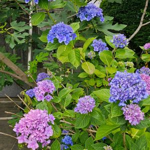 おはようございます😊 お寺の紫陽花 紫陽花って不思議よね~ 一本の木なのにカラフルに咲いてる💜🩷 🏷️水無月の青い花2025