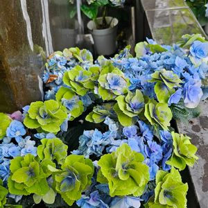 「アジサイ」 庭隅のアジサイたちが、今、こんな風に咲いています。 🏷水無月の青い花2025