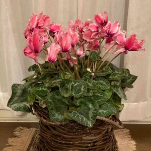 シクラメン🪴✨ とうとう我が家へ連れ帰りました😃 ¥700…👀‼︎ ぇっ👀‼︎‼︎ お花の色と、葉が活き活きしてること☘️ その場を離れられなくなってしまった🤣 イオンのお花屋さん…やるなぁ〜💖 昔々…カントリーにハマった頃、アケビの蔓で作ったカゴにドンピシャ✨🎶 自分へのクリスマスプレゼントにしよ〜っ🎁✨