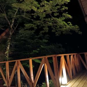 🌋山小屋シリーズ🌋 ウッドデッキからの夜のモミジ この景色が好き ここでの🍺と🚬は格別にうまい👍 おっさんか・・………