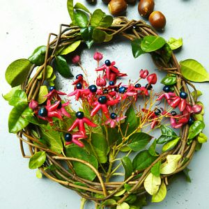 テイカカズラを🌀とリース枠に🌿 クサギ、8月下旬は花だったのが実をつけてます💙 真赤な星の中心に青い宝石が飾られて、美しい天然のブローチ❤💙 二色効果でより強く鳥の目を引く作戦です!