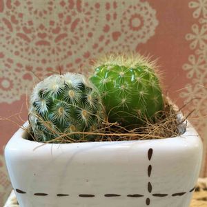 マミちゃん🌵 またダイソーで新しいマミちゃんを発見💕 手前のは見たことない針だし、奥のは明るい色の緑が綺麗で、我が家にお連れしました🏠