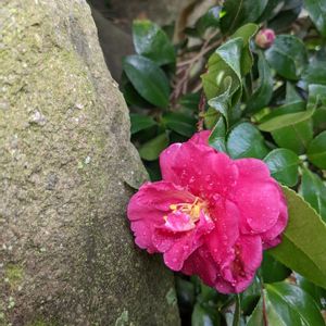 我が家の長寿50年目のサザンカが〜 ひっそりと石の陰から顔出していた!! 華やかな色合いが辺り一面に賑わっている〜👏😄🎉 頑張っているなぁ〜💪 有り難うね🙋💕