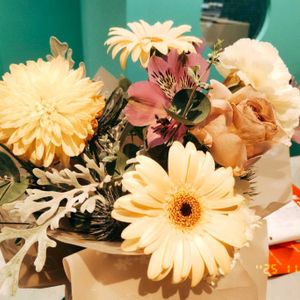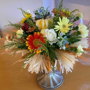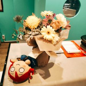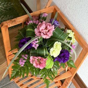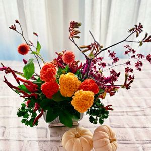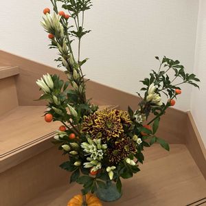 月に数回のフラワーアレンジメント の教室での10月の作品 毎月色々なお花と出会えるので とっても楽しみです💕