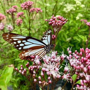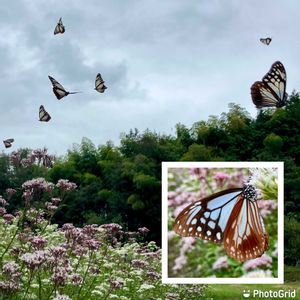 🍀フジバカマ🍀 今朝、今年初めてのアサギマダラを見ました。💕🤗🎶🎵ウチのほんの少ししかないフジバカマに来てくれました。 感激です。😭💘😍🤩🥰 フジバカマのお世辞にもいい香りとは言えない匂いにさそわれて、南下途中に寄ってくれるのよね。 ありがとう〜 🏷️コラージュ仲間達 に参加させて下さいね。