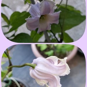 クレマチス、クリスパエンジェル👼 何度見ても可愛いです✨ 種蒔きっ子のジニアが開きだしました~🎶 開ききったらどんなになるかな🙋 ジャクリーヌ、デュプレ🤍 うっかり🌧️の当たるところに移動してしまってて、🌧️が重くて下⤵️を向いちゃいました~😓