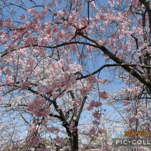 枝垂れ桜のまわりは人だらけで背のびして手を高くあげて撮りました。