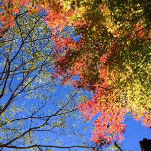 今年の紅葉はいつもの年より遅く、只今、Green、オレンジ、黄色の色合いがすごく綺麗です。 (^_^)