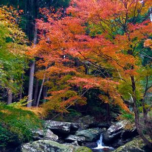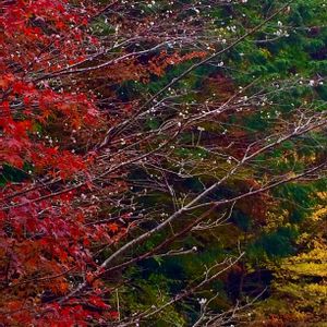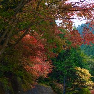 白倉峡にて。 Green、赤、オレンジ、黄色のコントラストが素晴らしいです。