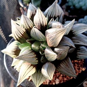 ハオルチアのアトロフスカミュータントです😊 これもはなむすびでゲットしました❗ 無事に持って帰れたのでそのままですが調子良さそうです👍 艶々してて綺麗✨ こういう変わり種❓も、もう一個くらい欲しいですが、そろそろ置き場所が危なくなってきました😅 ハオルチア増やしはじめて1ヶ月なのに…😱 ちょっとペース落とさないと駄目ですね😣
