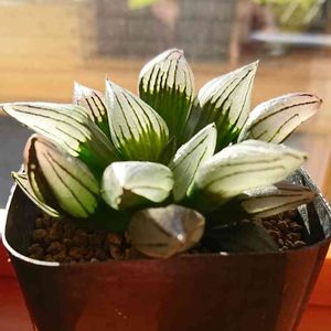 こんにちは😀風が少し強いですが快晴☀の空が広がっています。気温の変化が凄いことになっていて昨夜は地震もあったし色々な事が心配になります。 ハオルチア98号の🌵アトロフスカミュータント🌵レンズをとおすと綺麗に見えますが実物はいじけています💦 多肉3年生になりました😆学ばない人なので成長がなくまだ初心者です💦