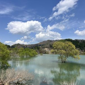 昨日のお出かけ先 山形県の白川ダム水没湖😊 期間限定あと数ヶ月するとなくなるそうです😯 最後の 帰りに寄った道の駅高畠の 阿久津八幡三重塔と鯉のぼり🎏 天気が良く気持ちよかったです☺️
