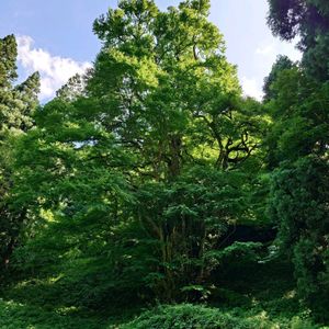 ■大滝のカツラ 幻想の森には、樹齢1000年を超える杉が群生しているらしく、見に行こうと思ったら「7月の豪雨災害による大規模な林道崩落のため通行止め」「現在復旧に向け関係機関と調整中」ということで断念。 代わりに、巨樹探訪というサイトで「名勝と巨樹で二度おいしい」とあり、山形のガイドブックにも紹介されていた大滝のカツラを見て来ました。 山形県指定天然記念物(1960年12月16日指定)らしい。 何の看板もなく、少し離れた滝は子ども連れや観光客で賑わっていましたが、大カツラへの道はほぼ整備もされておらず、寂れていて看板もなく、もう少しなんとかしてあげられないものかしらん。道を綺麗にして、看板をたてるだけでも雰囲気はかわるでしょうに。。。周りは草に覆われていて近づけなかったですが、見れて良かったです。 ※昨日の鳥海山の高山植物は、いつかまたみどりのまとめで。 最高気温35℃、最低気温26℃