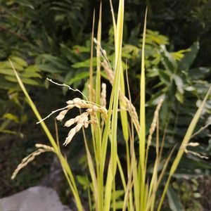 娘が学校からもらってきてバケツに植えた稲🌾 実りました(*‘ω‘ *)
