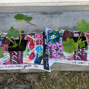 ズッキーニでございます。 向かって左が緑、 右が黄色いズッキーニです。 袋栽培どうなることか😜