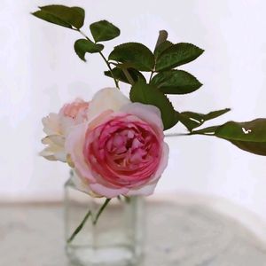 バラ🌹 ピエール・ドゥ・ロンサール 今年はなぜか、ぐんぐん伸びてのっぽになってしまいました😳 背が届かなくてpic が撮れなかったので切り花にして撮影😅 (素人なので生け方が下手😱、ましてそこら辺の🫙…どうかご容赦を😅)