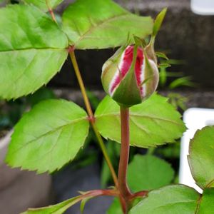 サントノーレ バラの新芽を見るのが楽しい時期です😊色がついてきたのでこれが一番に咲きそう🌹 すでに黒点でてるのがありますが、仕方ない…😩うちには合わないんだと、諦めることが出来るようになりました。 しかし、そうなると次が欲しくなっちゃうのがよろしくない🤭