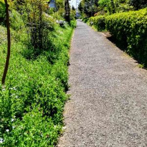 この道は線路のあと 戦争中の武器工場への引込線 年配の方は残った線路をよく憶えているとか 土手はステキな斜面ガーデンになってます