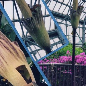 ときわ公園 世界を旅する植物館にて 5月23日開花 高さ3㍍13㌢ スマホで頑張ってみましたが、 アップ(左側📷)にしてみたけど、細かい部分見えませんね💦