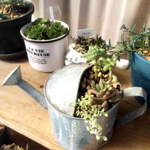 こんにちは🌞 良いお天気✨✨ やっと息子が寝たし、さぁ寄せ植え作ろう👩🏻🌾 こちらは先日作ったジョウロ寄せ💕