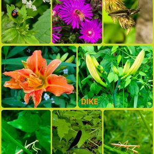裏山の花と昆虫たち なんとなく裏山を30分ほどお散歩して撮って来ました。ライブに近いな😅 左上よりナミテントウ、ミツバチとマツバギク、コメツキムシ、ヤブカンゾウ(花)、同蕾、カマキリ、ハグロトンボ、カマキリ