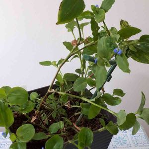 形が変だけど。 ピントが葉に合っちゃってるけど。 今朝、露草第1号咲いてました☺️