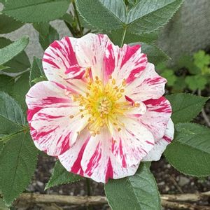 スターザンストライプス(ミニバラ) 白地にローズの絞り 花弁が少ないせいかつぼみからこの姿でがめっちゃ早い 昨日はまだ色がちょっと見えてるだけのつぼみでした うちにいてくれるバラの中で いちばん古参かもしれません シュラブなので 小さいオベリスクとかに仕立てたいのに 日当たりのせいなのか 全然大きくなりません だけど 毎年ちゃんと花を咲かせてくれます なんとかしたいなぁ