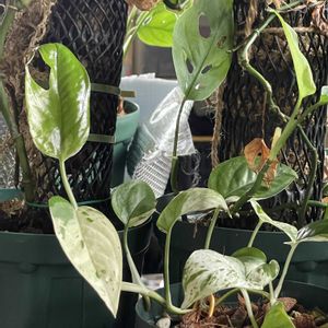 これは、なんじゃ!気持ち悪い👎 ラムローサかなとは思うけど‥⁉️ 二枚目 穴開き葉っぱ出たけど緑で他のの3倍くらい有る💃
