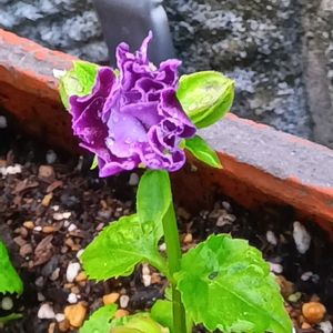 トレニア八重 水につけて根がでたのを半月鉢に植えたのも 最近 急な雨に 当たり 咲いてきました😅