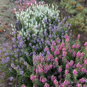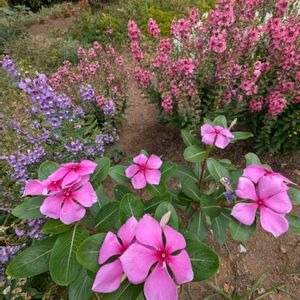 ニチニチソウ💕 アンゲロニアの中にこぼれ種のニチニチソウ💕 植えた苗よりもこぼれ種の花は強いねえ💪🥰 アンゲロニアが最強だよ〜💪 2025.8.9
