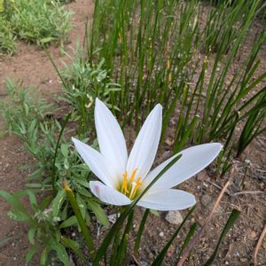 ゼフィランサス レインリリー やっと咲いたよ〜😆 空梅雨と暑い夏で葉っぱも少なくて…もう咲かないんじゃないかと…😅 先週の雨がやっと球根に届いたみたい🤗👍️💕 ③雨不足と暑さで桜の葉が茶色く落ちてきたよ〜😰木陰が無くなったら困るよ〜😭 2025.8.16