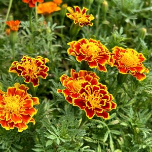 マリーゴールド🟡🟠 今日のお花 花壇では、この数年毎年花友さんがお庭から苗をもってきてくれて、植えたのがモリモリに育っています🥰👍️💕 酷暑が続いたこの夏も、元気にたくさん咲いてくれました🤗💪💕 夏の花壇には欠かせない花💕💕💕👍️👍️👍️ 2025.7月🤳