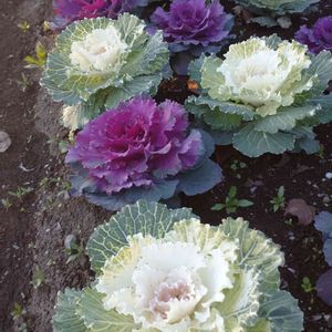 ハボタン😊 冬の定番😄👍…だから、あまり好きじゃなかったけど😅 春の伸びた姿が面白くて、毎年植えるようになりました😁😜💕 2022,12,16 🟦 🟨🕊️🕊️🕊️🕊️🕊️🕊️🕊️