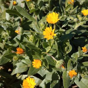 キンセンカ😊 黄色とオレンジの大きな花だから存在感があっていいねえ😆👍💕 次から次にツボミがついて、たくさん咲くよ~(^o^ゞ この左側にはチューリップが入ってるの😆💓 春が待ち遠しいよ~😉👌💕 2022,12,16 🟦 🟨🕊️🕊️🕊️🕊️🕊️🕊️🕊️