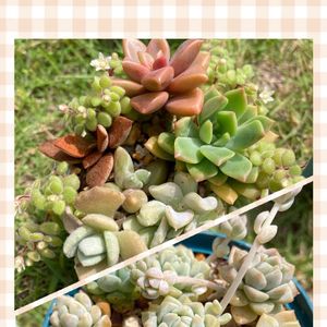 おはようございます😊 🏷️毎月15日はいちごの日 🏷️毎月15日はインコの日 ついに梅雨入りしてしまった☔️ 雨やだな〜夏休みも嫌だな〜🫠 ①セダム色々の多肉弁当を冬に買い、チマチマ寄せてたのに花が咲いてた🌸 ②③④自由型で育ってる子たち🪴 プロリフィカなんて勝手に丼になろうとしてる🍃