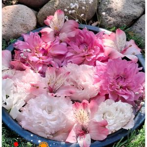 ㊗️モコさん 6年生進級 ㊗️サスケママさん HAPPY BIRTHDAY🎂 庭の花で、超特急で花手水作りました😆 お祝いさせてくださいね(*^ー゚) 優しいお2人大好きです😆💕✨ これからも宜しくお願いします