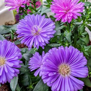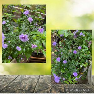 『宿根アスター ビクトリア』 先日、GSで拝見して一目惚れし、教えていただいた子です。 本当にボリュームたっぷりの素敵なpicでした💜 なかなか出会えなそうだなと思っていたら、今日偶然にも出会えてお持ち帰り🌸 すでにお花もたっぷりだし、2色植えで素敵💜💖 毎年咲いてくれるということで、どこに植えようか迷います😊