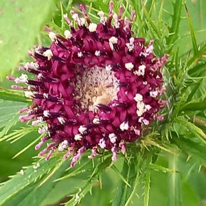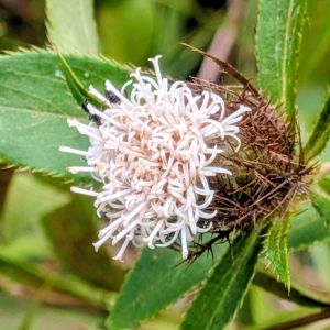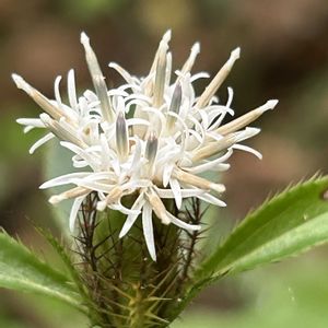 今日2枚目は初めて自生に 出会え感動のオケラ🌿🤍🌿 キク科オケラ属の多年草🌿 雌雄異株で本州〜九州の日当たりの良い乾いた山地に分布 虫じゃなくて🦗お花です😆 ①多分こちらは葯筒から雌蕊だけが伸びた両性花💜🤍💜 ②葯筒の青紫が美しい🩵💜 ③こちらは葯筒の無い 雌しべだけの雌花🌿🤍🌿 ④鐘形の総苞は羽の様な 苞葉に包まれてます🌿 ⑤草丈は40〜100cmで葉は柄があり1〜2対の羽状に分裂し上の物は時に分裂しない事もあるそう💡 🏷木曜モフモフ 🏷愛の花♡ 🏷️彩月(いろどりづき)の青い花2025 昨日の裏高尾で🏕️